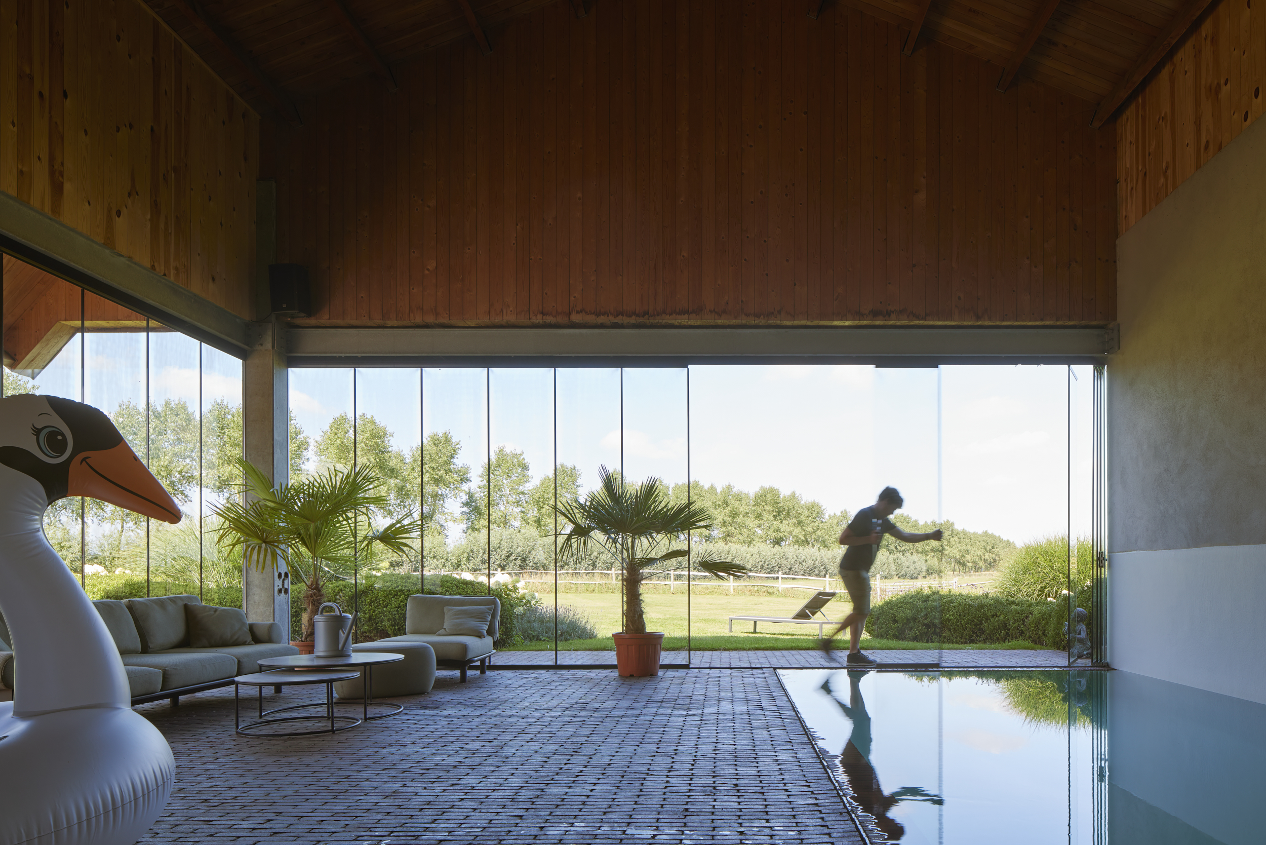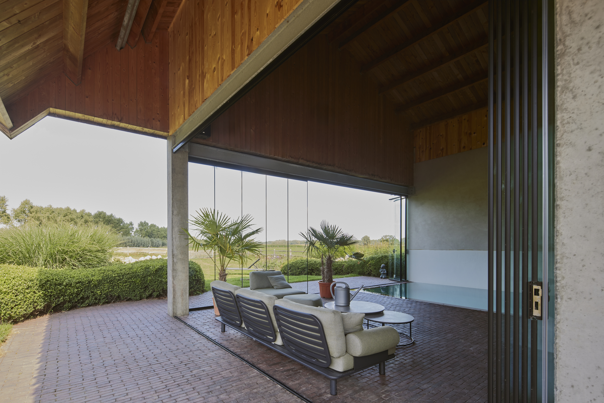 Verken SLIDING GLASS – een essentieel element voor uw landelijk overdekt terras met binnenzwembad. Onze op maat gemaakte schuifwanden scheppen een lichte, ruimtelijke ambiance die naadloos aansluit bij de rustieke charme van uw omgeving.